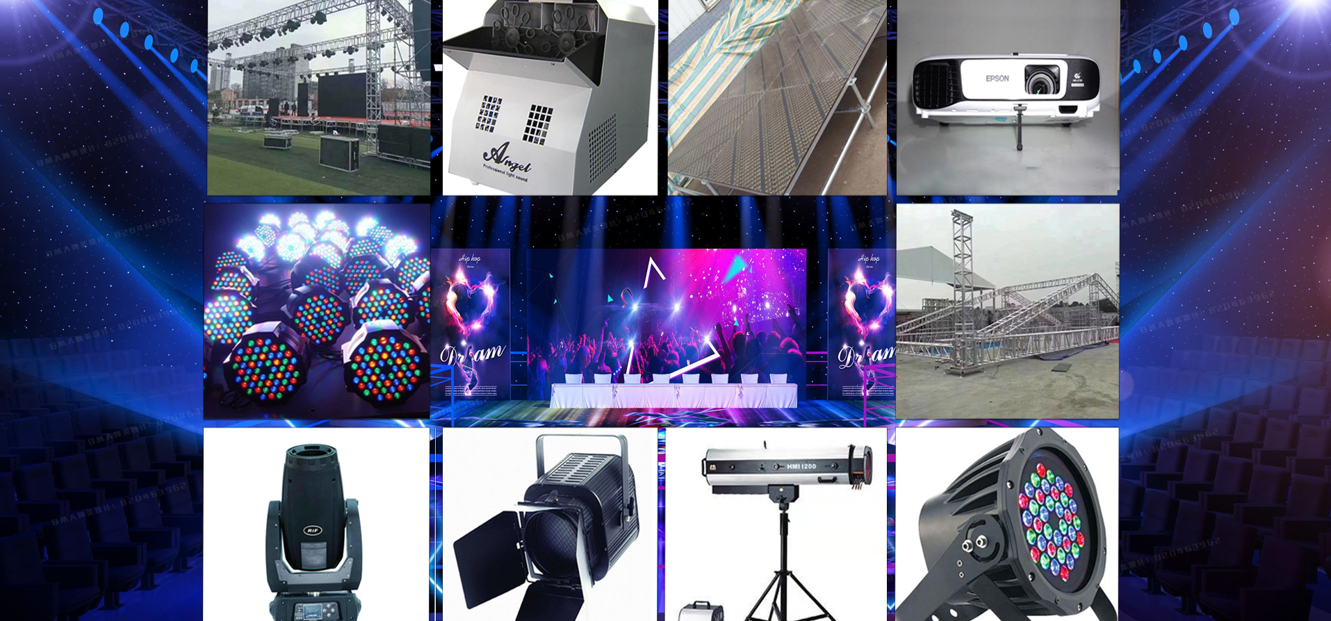 提供全程策劃執(zhí)行及燈光、音響、舞臺(tái)、背景、座椅、攝影攝像器材、氣球、拱門(mén)等設(shè)備租賃